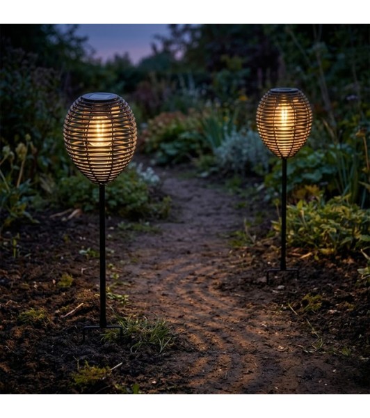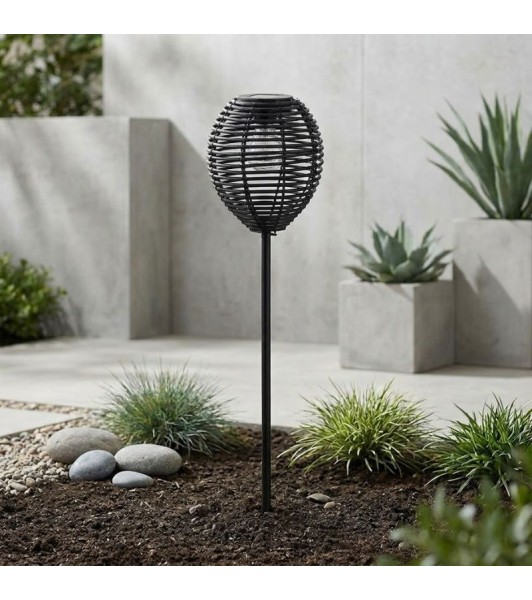Ηλιακό Φωτιστικό Κήπου Καρφωτό Εξωτερικού Χώρου Πλεκτό Μαύρο 76εκ.