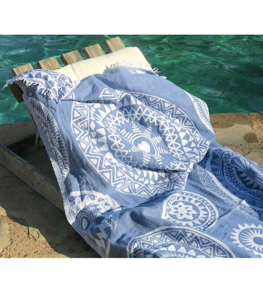 | Πετσέτα θαλάσσης Ζακαρ 642gr Xρώμα: Γαλάζιο - Λευκό Διάσταση: 90Χ170εκ. |