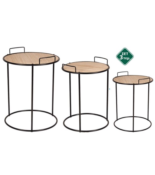 Σετ βοηθητικά τραπεζάκια 3 τεμ. από μέταλλο μαύρο και ξύλο 30x40cm-38x49cm-45x56cm