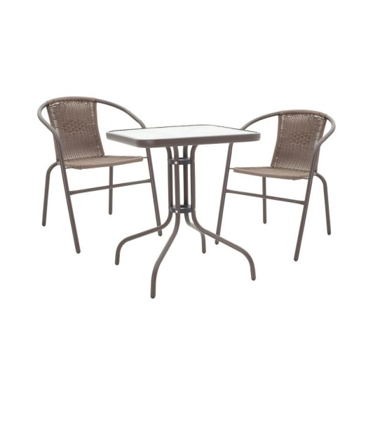 Tραπεζαρία Obbi-Watson pakoworld σετ 3τεμ καφέ μέταλλο-pe rattan 60x60x70εκ
